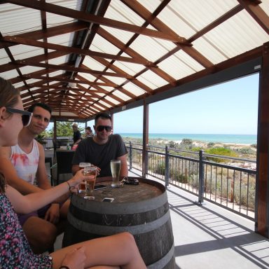 We will transport you in our air-conditioned commuter van to meet the aeroplane at Parafield Airport. You will takeoff from there for a 20 minute scenic flight before landing on Semaphore Beach, in front of the Semaphore Surf Lifesaving Club. There’s also the Point Malcolm Reserve BBQ area and Playground for self-catered options.